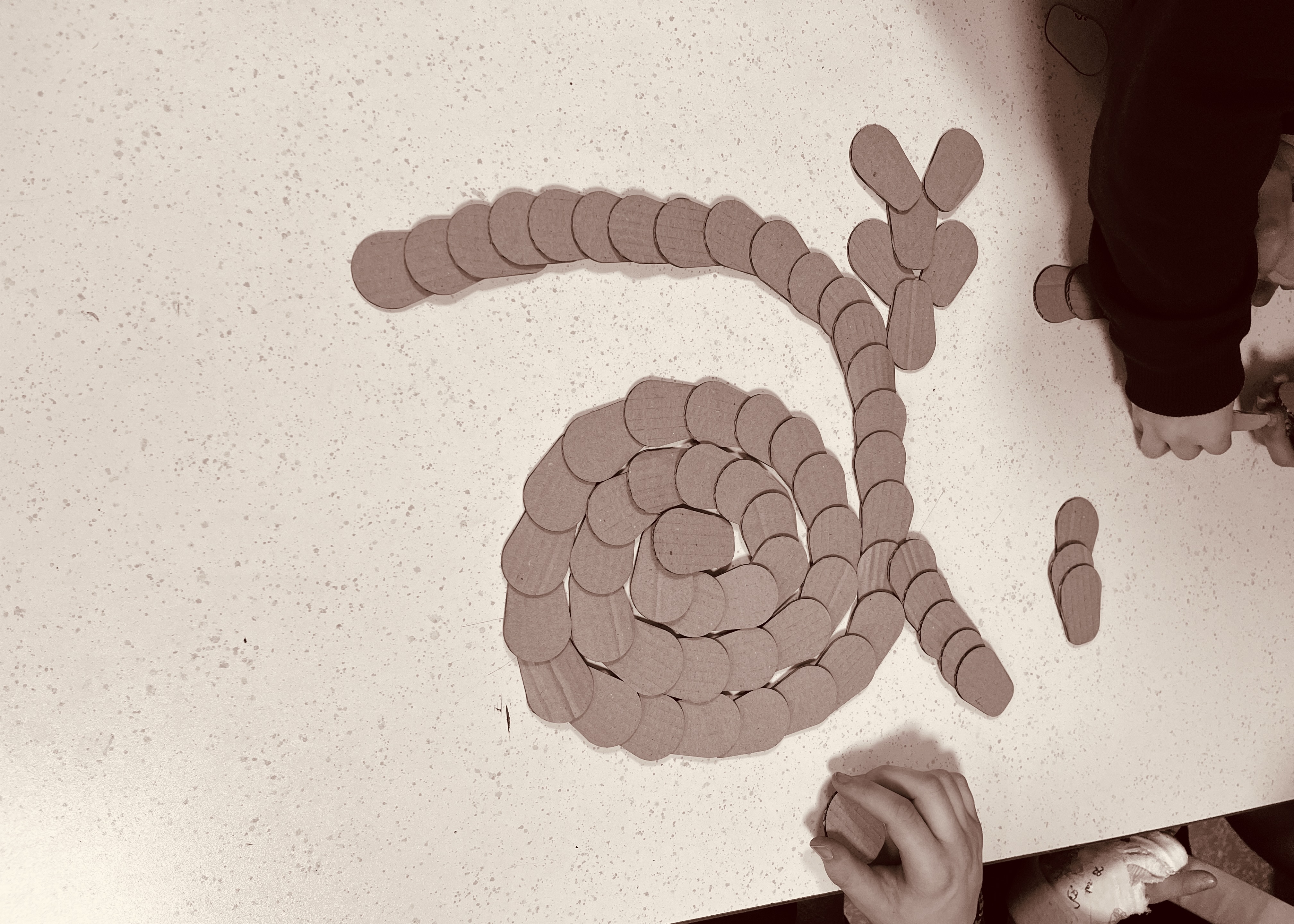 Après cette mise en jambe un peu physique, nous invitons les jeunes Paulhaguettois à composer avec des tuiles prédécoupées une maquette des installations.